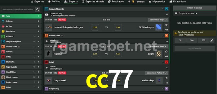 A aposta cc77 oferece aos jogadores a experiência mais conveniente de apostas em eSports!